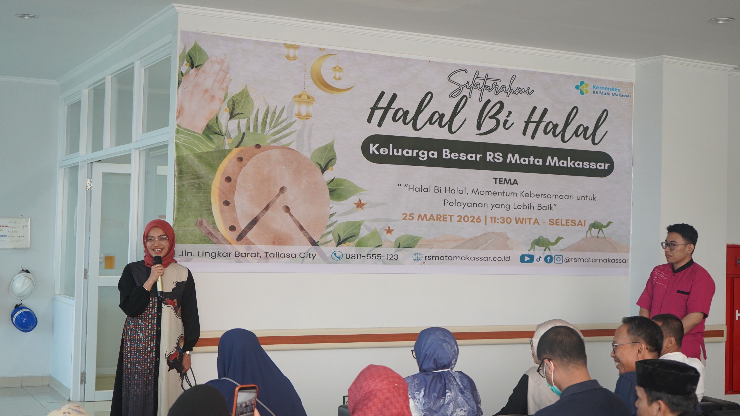 Makassar, 25 Maret 2026 - Keluarga besar RS Mata Makassar menggelar kegiatan Halal Bi Halal 1447 H dengan mengusung tema “Halal Bi Halal Momentum Kebersamaan untuk Pelayanan yang Lebih Baik”. Kegiatan ini dilaksanakan di lantai 2 gedung rumah sakit mulai pukul 11.30 WITA hingga selesai, menjadi momen penuh makna di hari pertama kembali beraktivitas pasca libur Hari Raya Idulfitri.